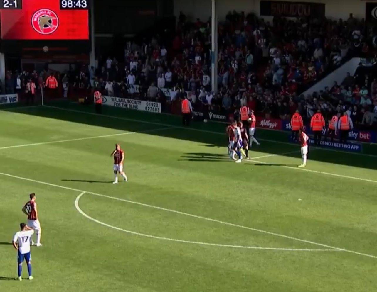 ولم يصطدم المقذوف بروبرتس لكنه سقط بالقرب منه، وقال هولواي في مقابلة مع وسائل إعلام النادي إن المقذوف كان جزءاً من مقعد في الملعب.