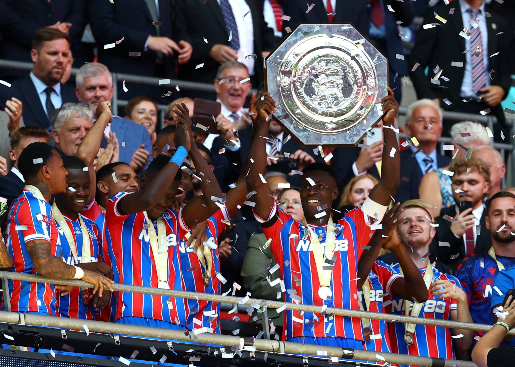 كريستال بالاس خلال تتويجه بدرع المجتمع (رويترز)