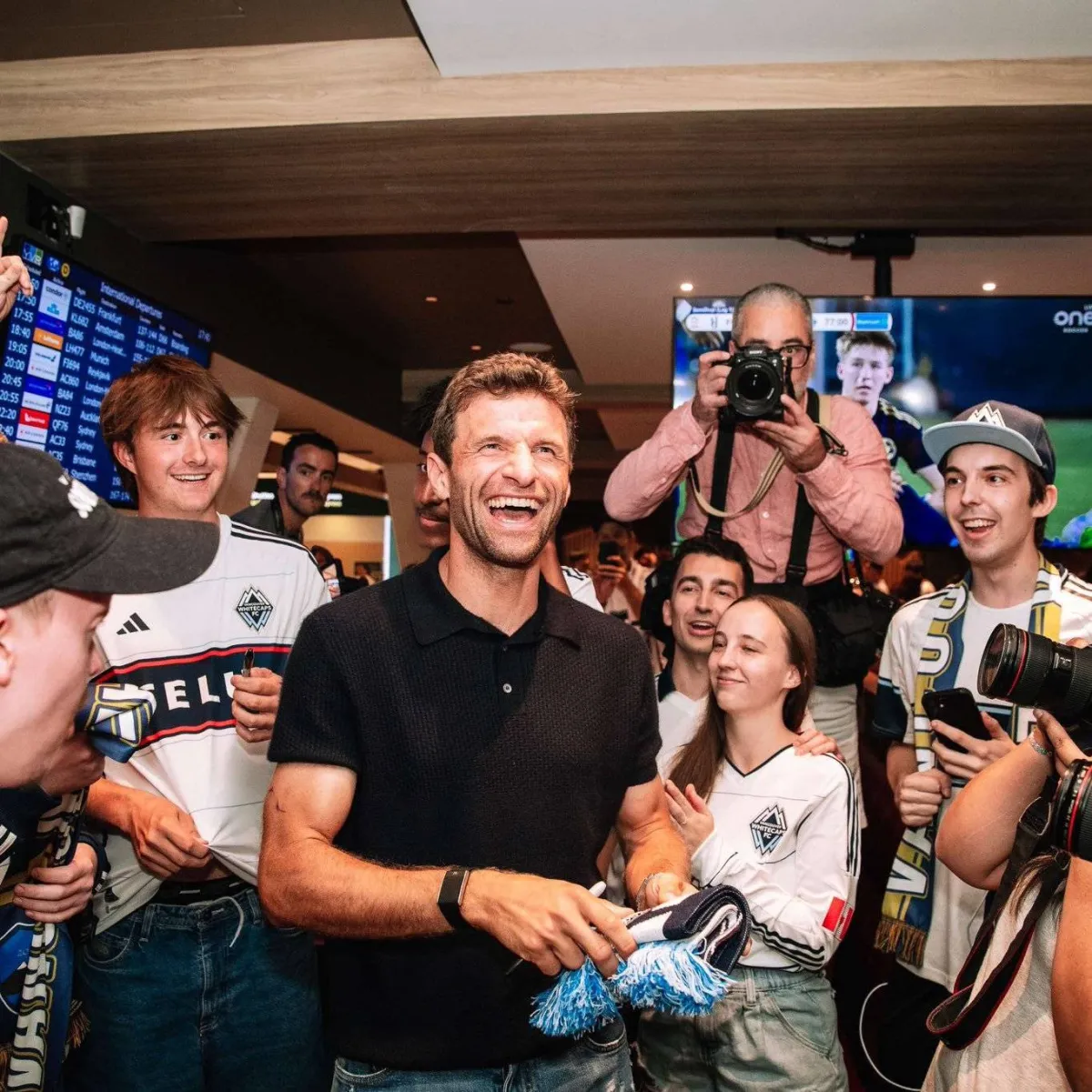 تلقى النجم الألماني المخضرم توماس مولر استقبالاً حافلاً من جماهير فانكوفر وايتكابس لدى وصوله إلى كندا بعد انضمامه للفريق عقب نهاية عقده مع بايرن ميونيخ.