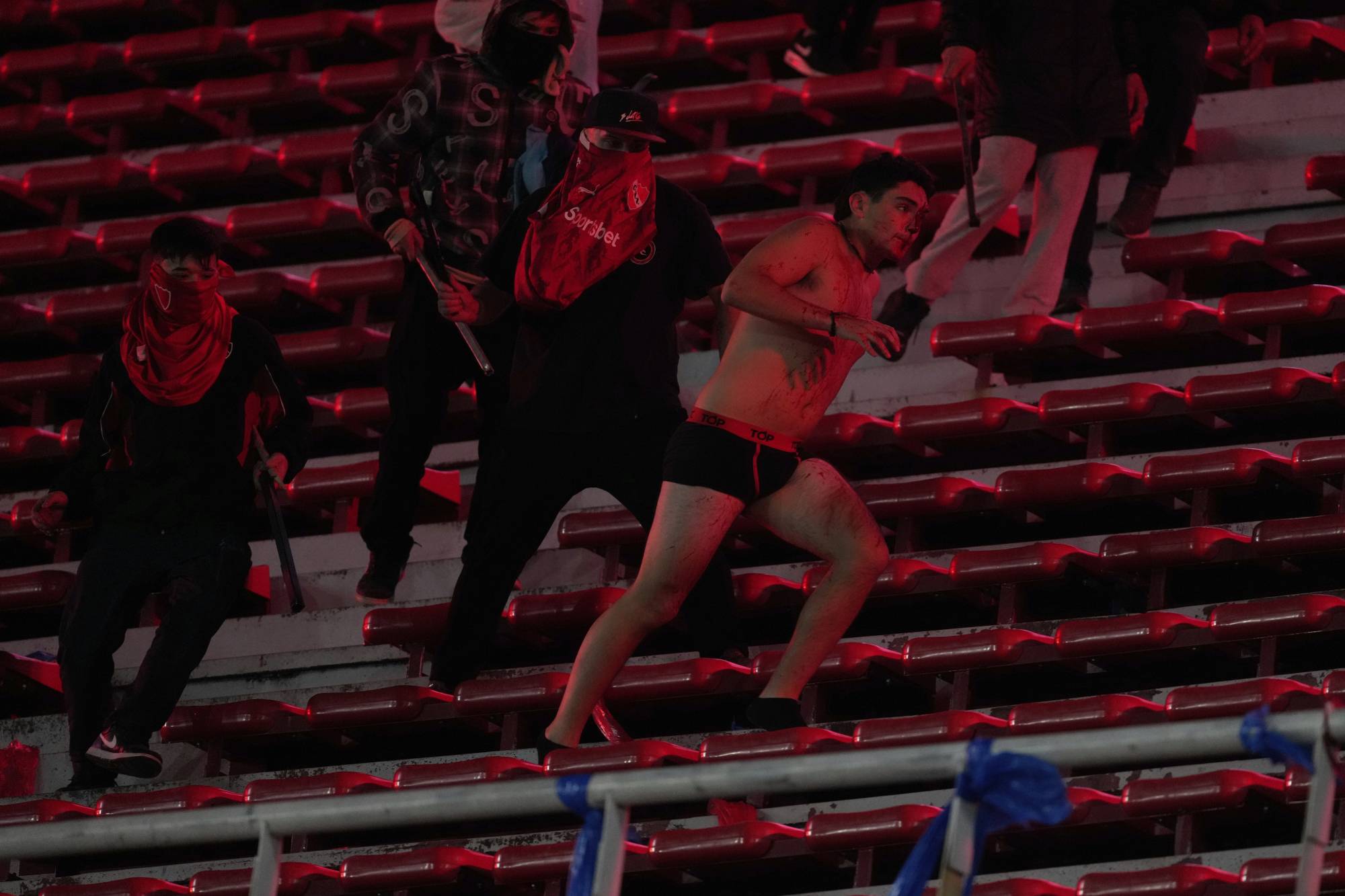 وقال مراسل «وكالة الصحافة الفرنسية» الموجود في مكان الحادث، إن مشجعي إنديبندينتي اعتدوا بالضرب على بعض مشجعي يونيفرسيداد وتجريدهم من ملابسهم بعد اقتحام المدرج الخاص بهم.