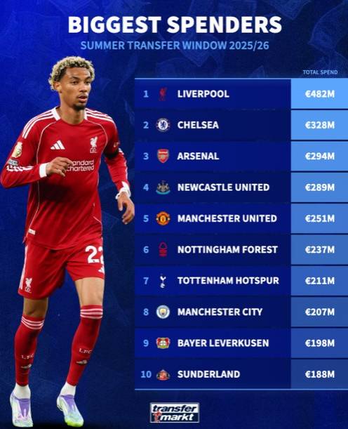 قبل أن تُحسم قضية انتقال ألكسندر إيزاك، كان الدوري الإنجليزي الممتاز قد دوّن التاريخ هذا الصيف. ففي يوم 21 أغسطس (آب)، وقبل عشرة أيام من إغلاق سوق الانتقالات، تجاوزت نفقات أندية الدوري سقف 2.5 مليار جنيه إسترليني، وهو رقم قياسي غير مسبوق. ومع إسدال الستار على النافذة الصيفية، ارتفع المجموع إلى 3.1 مليار جنيه إسترليني، وفقاً لتقرير نشرته صحيفة «تلغراف» البريطانية.