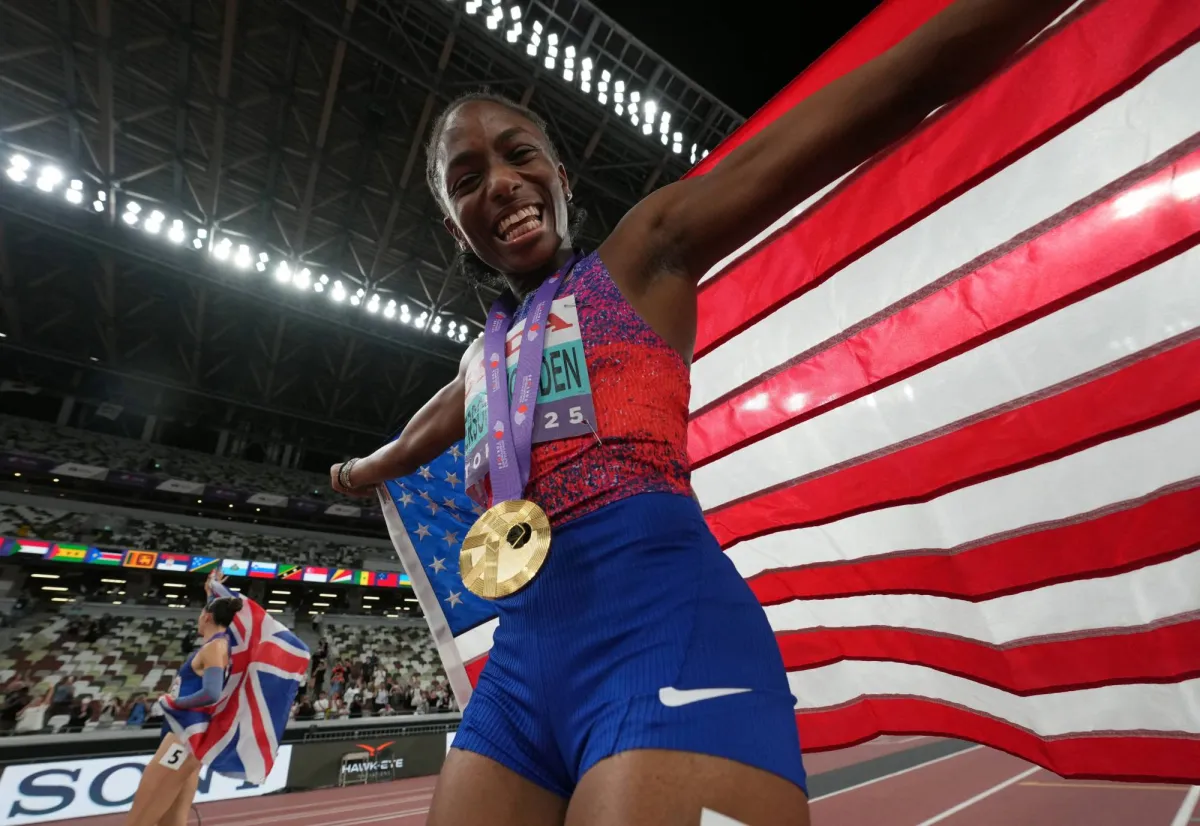 وانضمت جيفرسن وودن إلى مواطنها نواه لايلز، الذي تُوج أيضاً بلقب سباق 200 متر قبلها بدقائق معدودة.