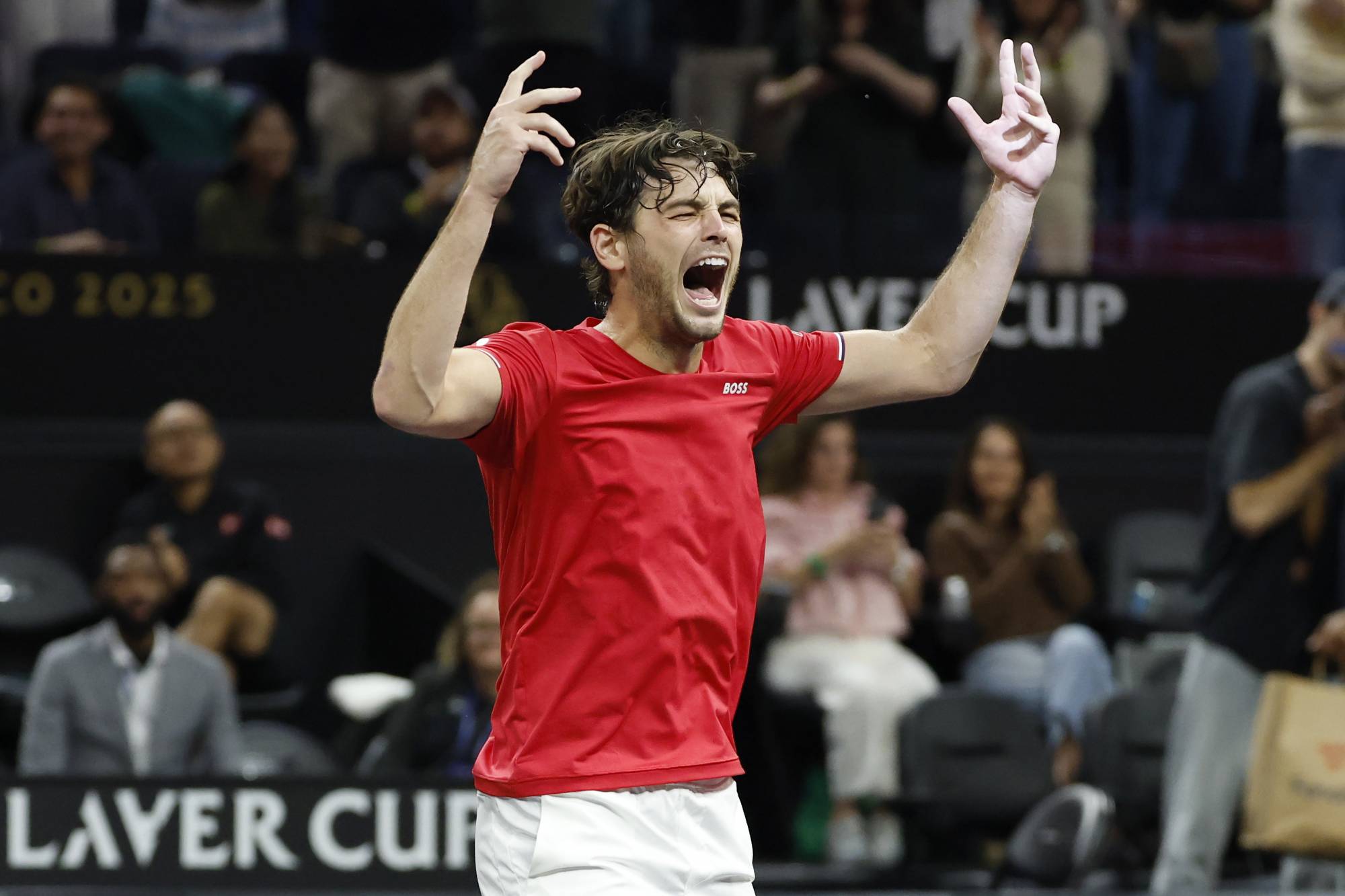 تسبَّب تيلور فريتز لاعب فريق العالم في هزة مفاجئة لفريق أوروبا في كأس ليفر للتنس، أمس (السبت)، إذ باغت كارلوس ألكاراس، المُصنَّف الأول عالمياً، وتغلب عليه بنتيجة 6 - 3 و6 - 2 قبل أن يعزِّز زملاؤه في الزوجي تقدمهم إلى 9 - 3 في اليوم الثاني وقبل الأخير من البطولة.