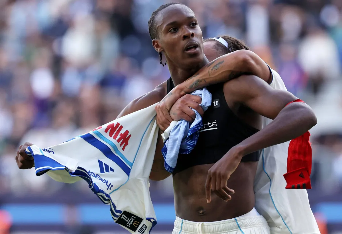 إيمانويل إميغا يحتفل بهدفه في مرمى باريس إف سي (أ.ف.ب)