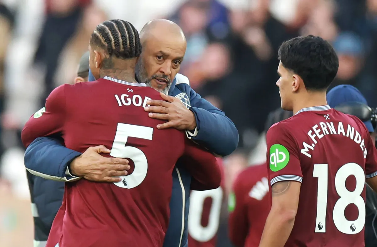 احتفل نونو إسبيريتو سانتو مدرب وست هام يونايتد بانتصاره الأول في الدوري الإنجليزي الممتاز لكرة القدم مع الفريق، ملوحاً بقبضته في الهواء عند صافرة النهاية بعد الفوز المثير على نيوكاسل يونايتد الأحد.
