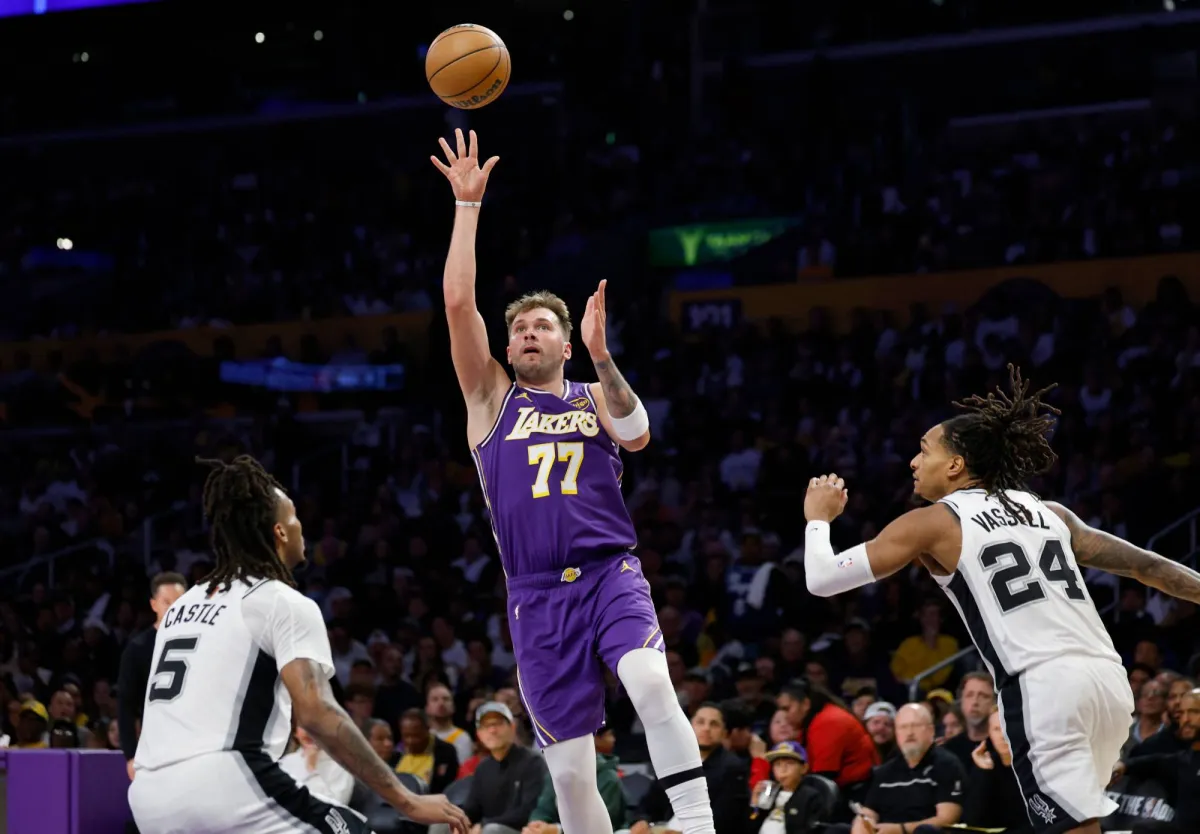 لوكا دونتشيتش يقود لوس أنجليس ليكرز للفوز على سان أنتونيو سبيرز وعملاقه الفرنسي فيكتور ويمبانياما (أ.ف.ب)