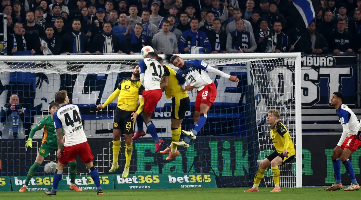 لكن دورتموند لم يتمكن من الحفاظ على تقدمه وسجل رانسفورد يبواه كونيغسدورفر، لاعب هامبورغ، هدف التعادل بضربة رأس في الدقيقة السابعة من الوقت بدل الضائع لينقذ نقطة لأصحاب الأرض.
