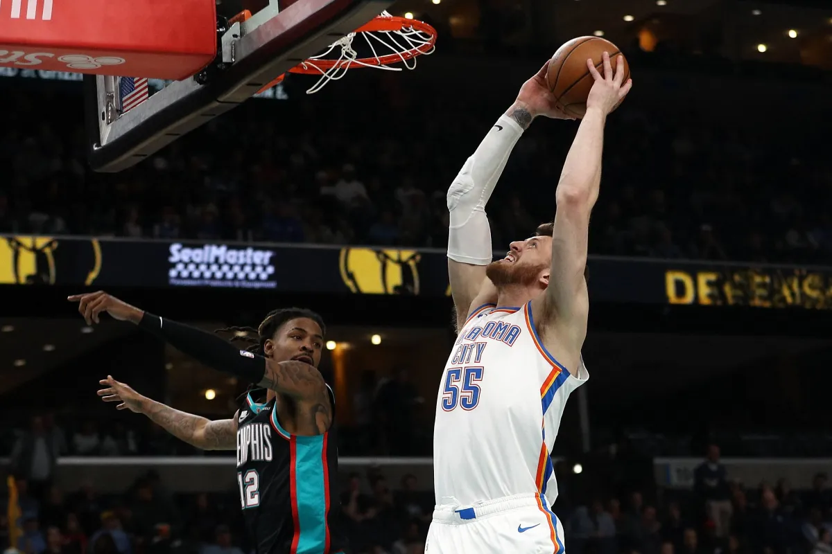 عاد أوكلاهوما سيتي ثاندر، حامل اللقب، من تأخرٍ بلغ 19 نقطة في النصف الأول، ليهزم مُضيفه ممفيس غريزليز 114-100، الأحد، ويعزّز رصيده الأفضل، هذا الموسم، بـ10 انتصارات، مقابل خسارة واحدة، ضِمن دوري كرة السلة الأميركي للمحترفين.