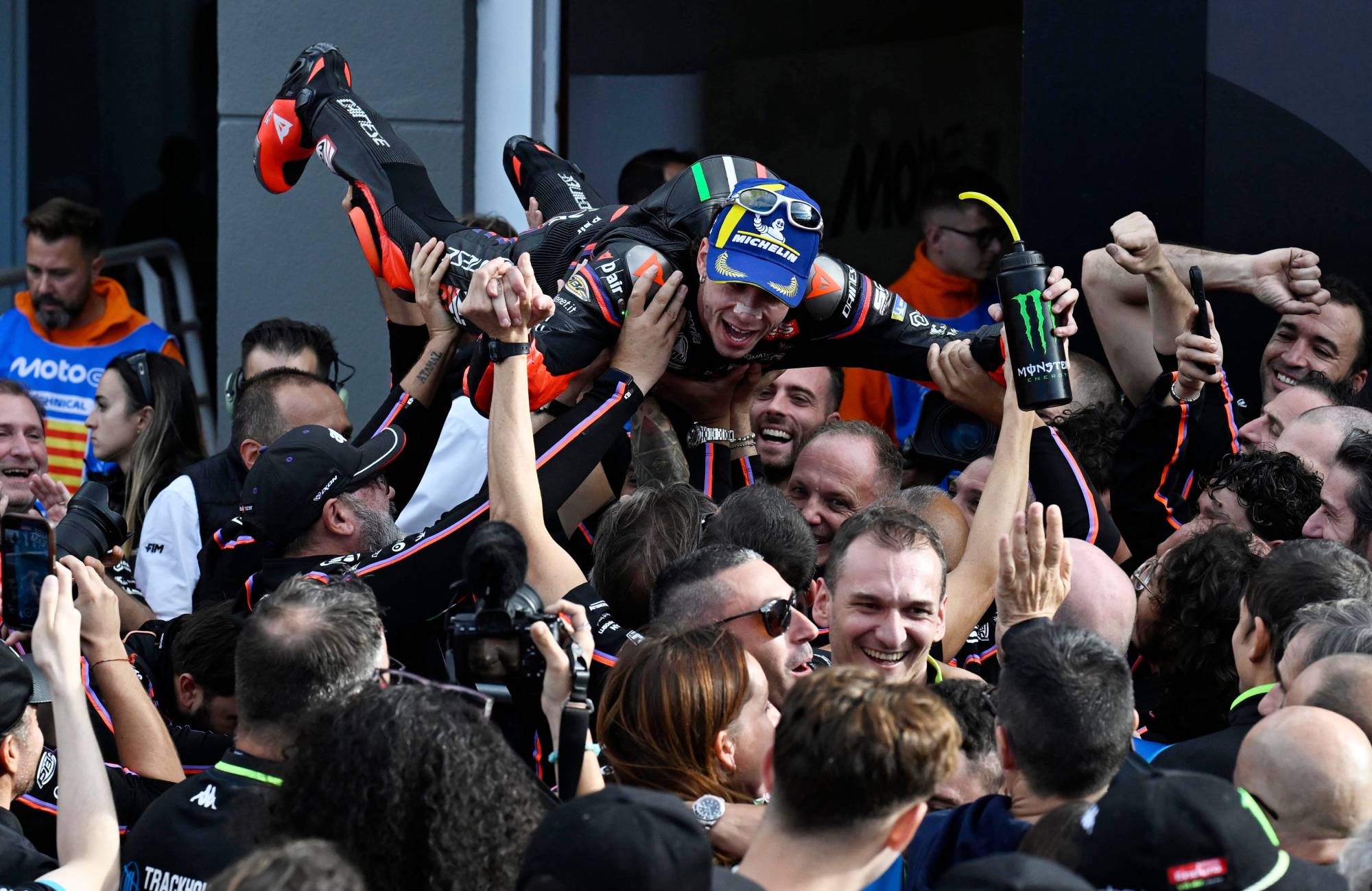 قاد ماركو بتسيكي السباق من البداية ليعبر خط النهاية أولاً في ختام موسم بطولة العالم للدراجات النارية في جائزة فالنسيا الكبرى، الأحد، مانحاً فريق «أبريليا» انتصارين متتاليين لأول مرة في تاريخه.