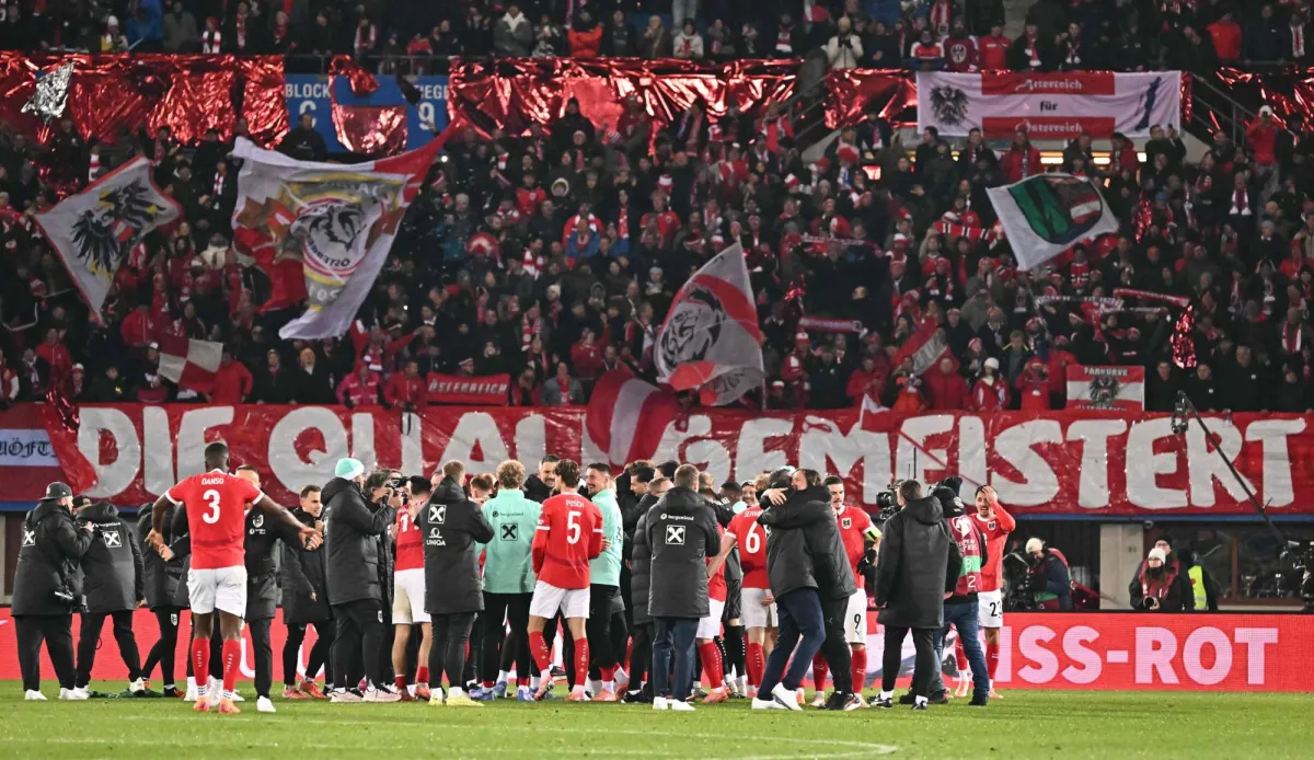 لاعبو النمسا يحتفلون مع جماهيرهم بالتأهل لكأس العالم (أ.ف.ب)