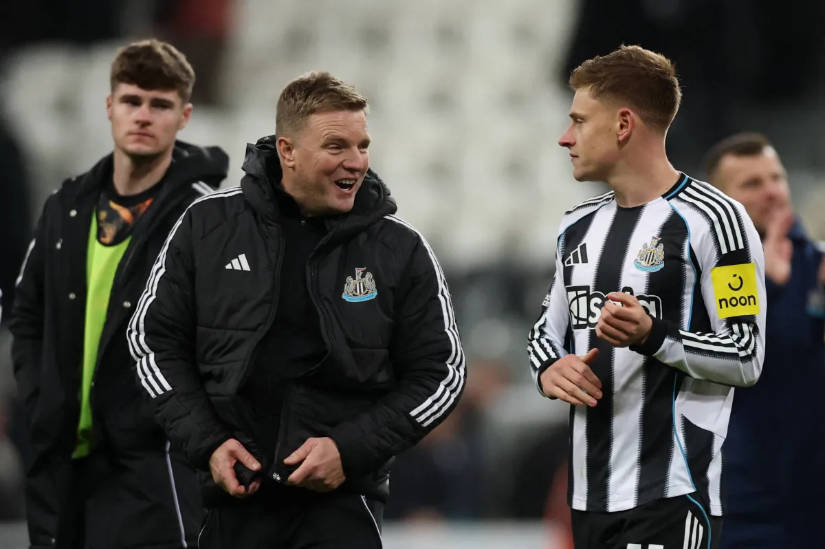 عندما دخل إيدي هاو أرضية الملعب لتحية لاعبيه، وضع مساعده جايسون تيندال ذراعه بقوة حول كتفيه. كانا قد تعانقا بالفعل عند الخط بعد صافرة النهاية، لكن فوز نيوكاسل يونايتد 2-1 على مانشستر سيتي كان يستحق «احتفالاً مزدوجاً»؛ مزيجاً من السعادة والارتياح.