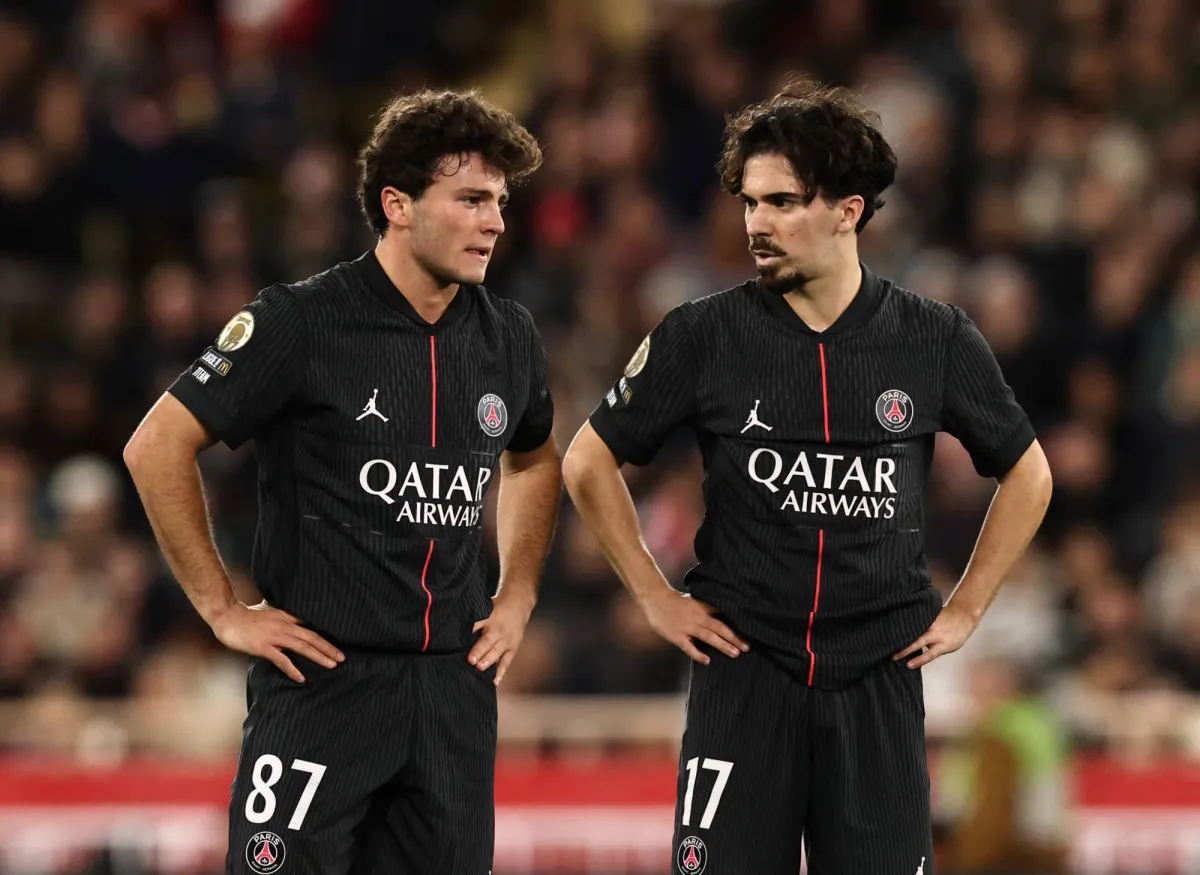 حسرة جواو نيفيز وفيتينيا ثنائي باريس سان جيرمان بعد الهزيمة من موناكو (رويترز)