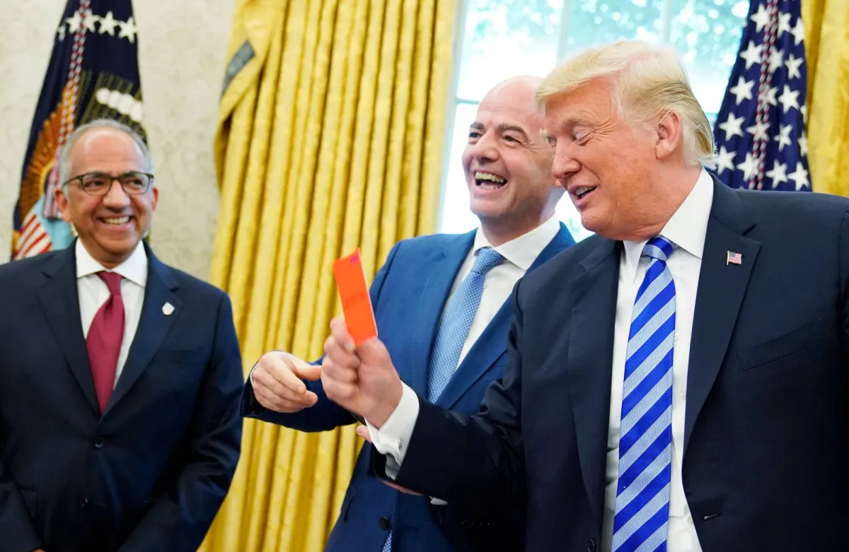عندما زار «رئيس الاتحاد الدولي لكرة القدم (فيفا)»، جياني إنفانتينو، الرئيس الأميركي، دونالد ترمب، في البيت الأبيض عام 2018، كسب ودّ الأخير بهدية: بطاقة حمراء ضخمة، واقترح مازحاً أن يستخدمها ترمب «كلما أراد طرد أحدهم».