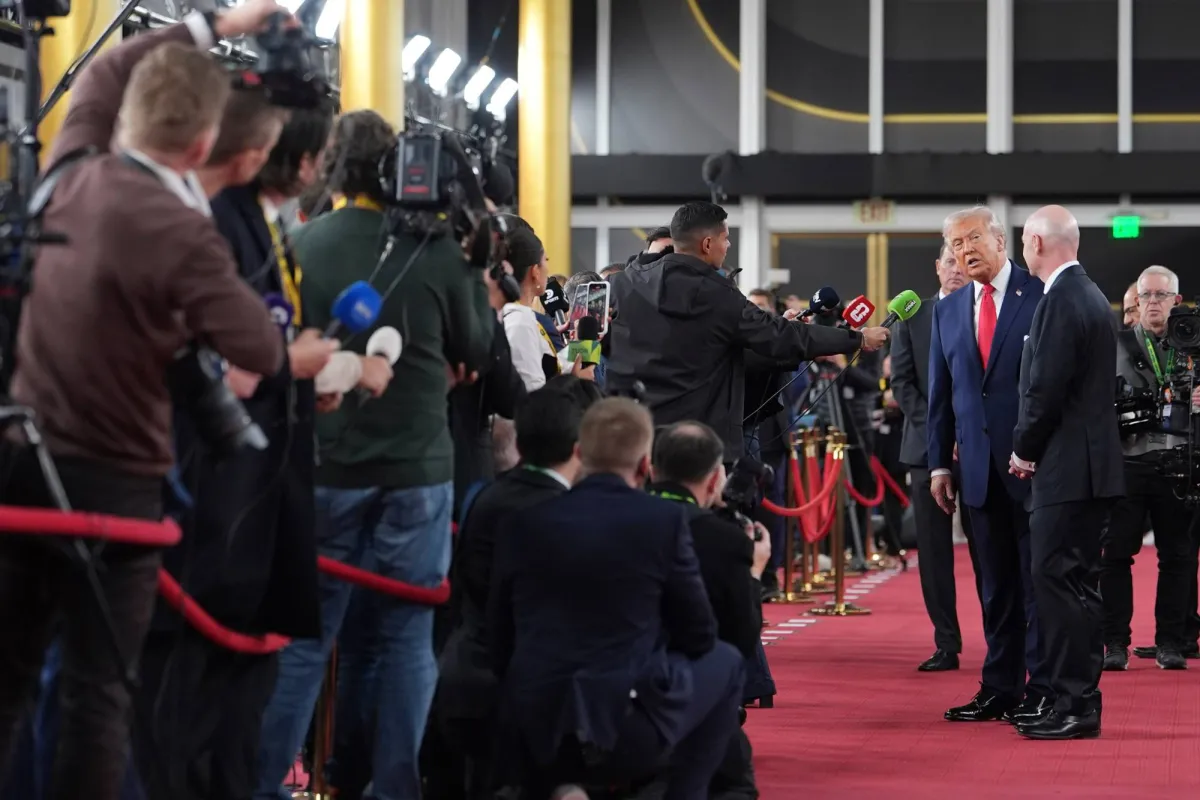 الرئيس الأميركي دونالد ترمب لدى وصوله مركز كنيدي رفقة رئيس الفيفا إنفانتينو (أ.ب)
