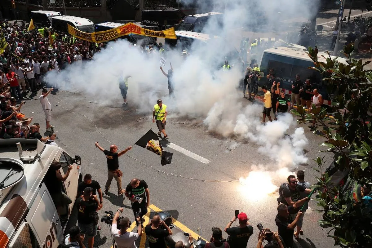وبحسب شبكة «The Athletic»، فإن الشرارة جاءت بعدما دعا اتحاد سائقي التاكسي في كاتالونيا، المعروف باسم «إيليت تاكسي»، إلى إضراب شامل يوم الثلاثاء في كامل الإقليم، رفضاً لانتشار شركات النقل الخاص مثل «أوبر» في شوارع برشلونة. لكن الاتحاد لم يكتف بذلك، فالتصعيد شمل أفكاراً لوضع حواجز و«سلاسل بشرية» عند نقاط أساسية في المدينة، من بينها محيط ملعب برشلونة.