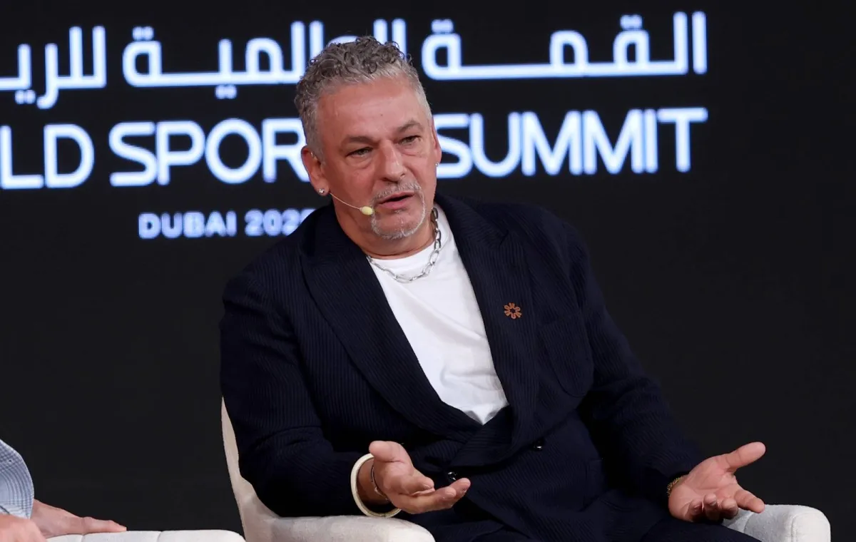روبرتو باجيو خلال مشاركته في جلسة حوارية ضمن أعمال القمة العالمية للرياضة (الشرق الأوسط)