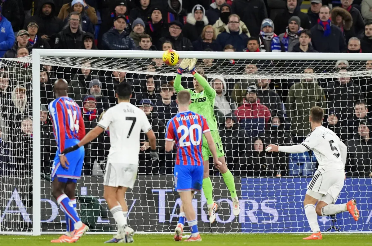 حارس كريستال بالاس دين هندرسون يتصدى لإحدى الكرات أمام فولهام (د.ب.أ)