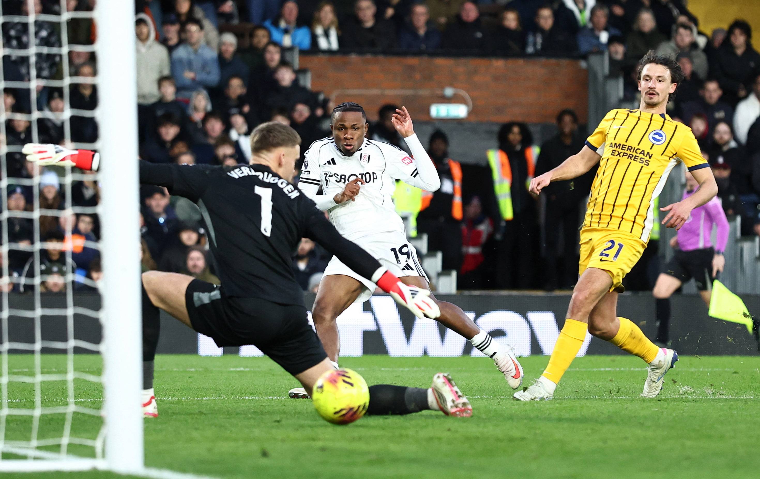 صامويل تشوكويزي يهز شباك برايتون في فوز فريقه فولهام (رويترز)