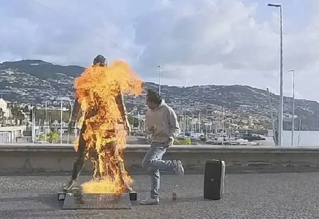 أقدم شخص على إضرام النار في تمثال النجم البرتغالي كريستيانو رونالدو، مهاجم النصر السعودي، في جزيرته الأم، ماديرا، في حادثة غريبة أثارت ضجة واسعة على مواقع التواصل الاجتماعي.