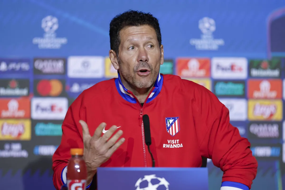 دييغو سيميوني خلال المؤتمر الصحافي (إ.ب.أ)