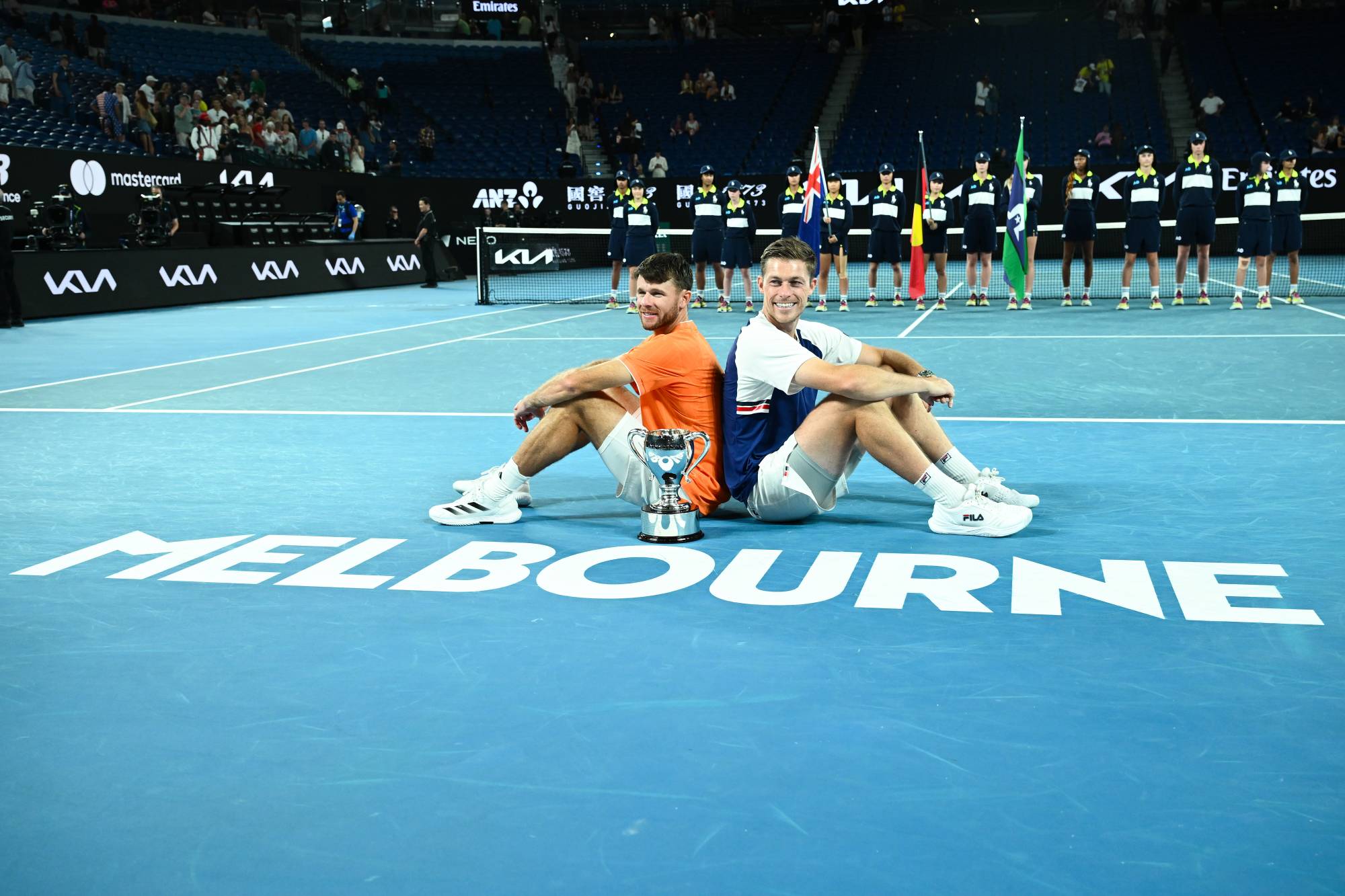 البريطاني نيل سكوبسكي والأميركي كريستيان هاريسون يحتفلان بلقب أستراليا (رويترز)