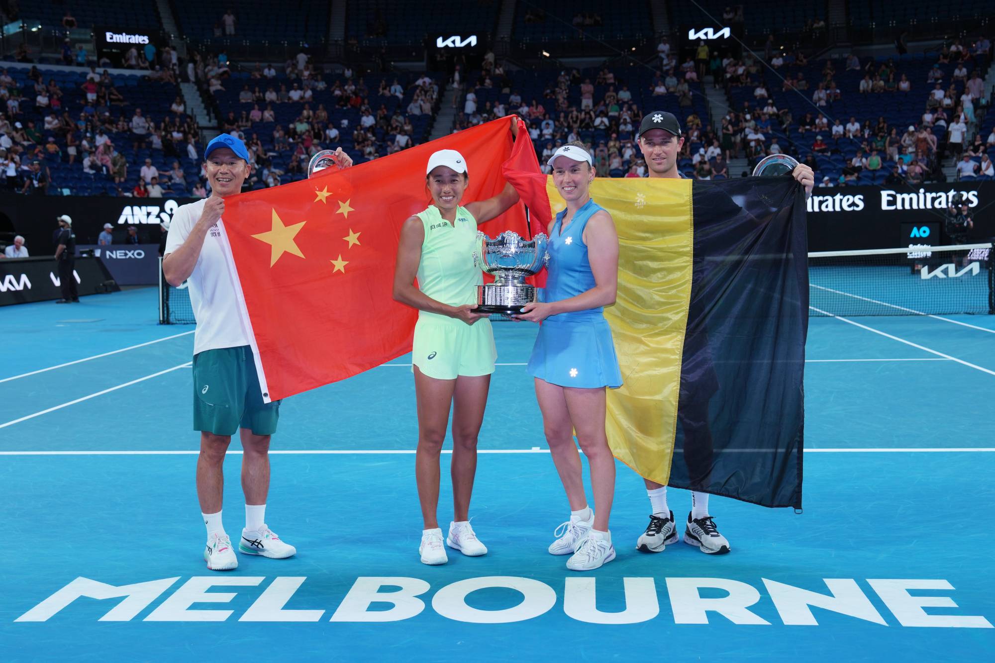 علمَا بلجيكا والصين يرفرفان في ملبورن بعد فوز ميرتنز وغانغ (أ.ب)
