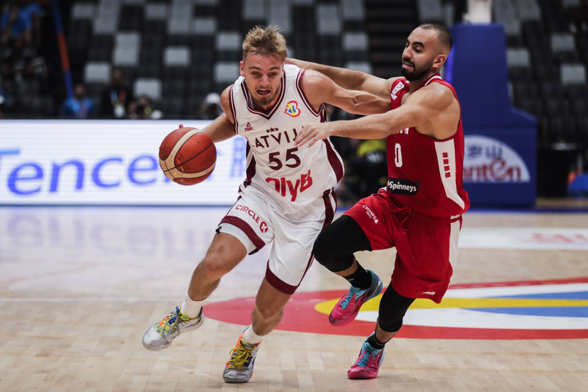 وتلقى المنتخب اللبناني العائد للمشاركة في المونديال السلوي بعد غياب لـ 13 عاماً منذ مشاركته الأخيرة في مونديال تركيا عام 2010، خسارة ثقيلة على يد لاتفيا التي تُشارك للمرة الأولى، والتي أمطرت سلة اللبنانيين بـ 18 ثلاثية من أصل 35 محاولة، في نسبة عالية بلغت 51 في المائة من خارج القوس.