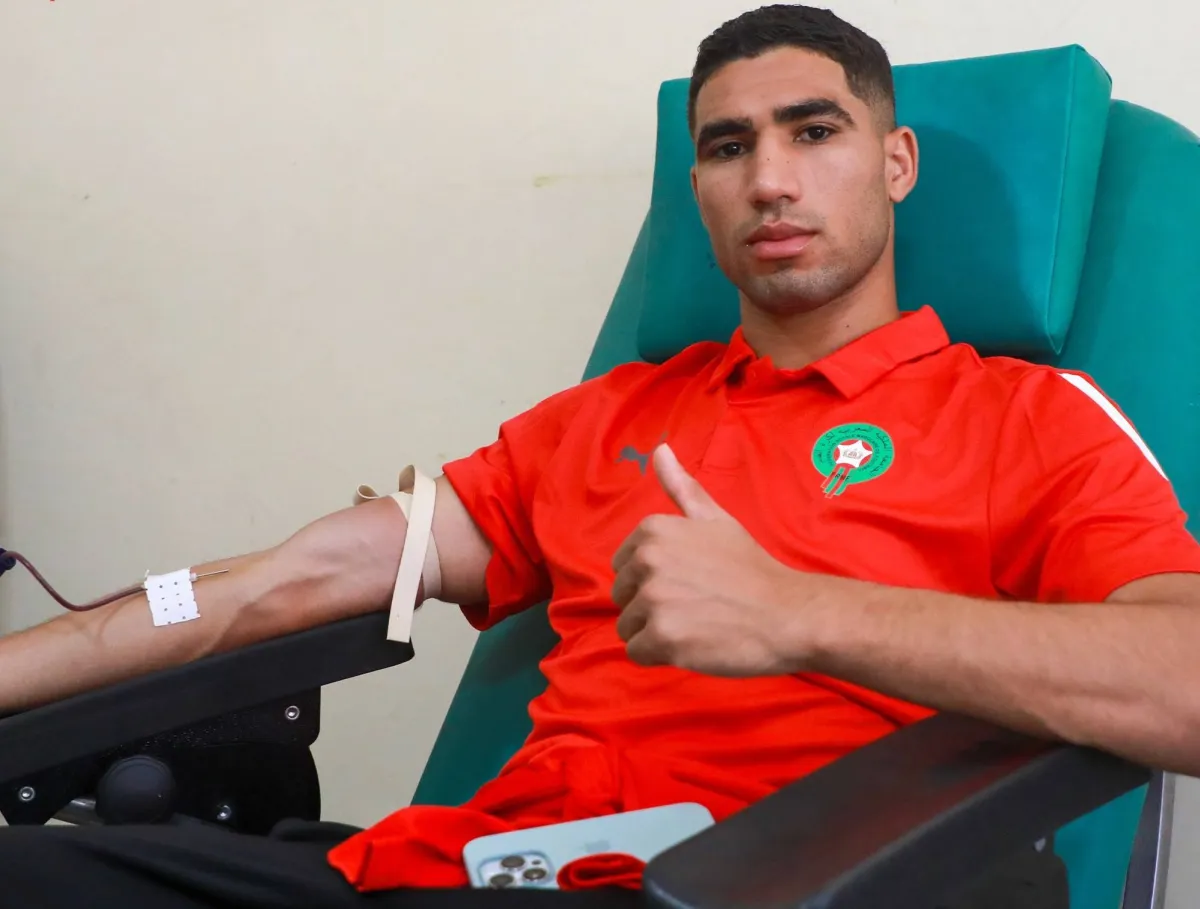 وأرفق التعليق بصور عدد من نجوم المنتخب أثناء تبرعهم بالدم، بينهم المدرب وليد الركراكي، وأشرف حكيمي لاعب باريس سان جيرمان، الذي دعا المغربيين بالسير على خطاهم أيضاً.