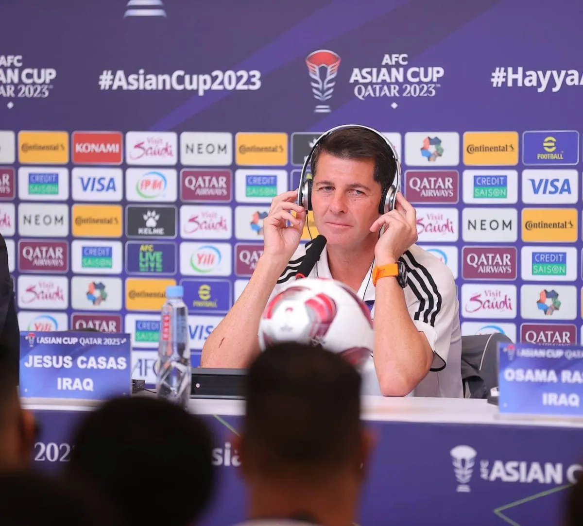 خيسوس كاساس مدرب العراق خلال المؤتمر الصحافي (المنتخب العراقي)