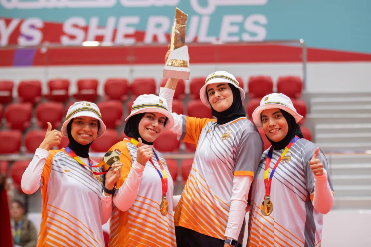 لاعبات الثقبة للسهام خلال تتويجهن بميداليات المركز الأول (الشرق الأوسط)