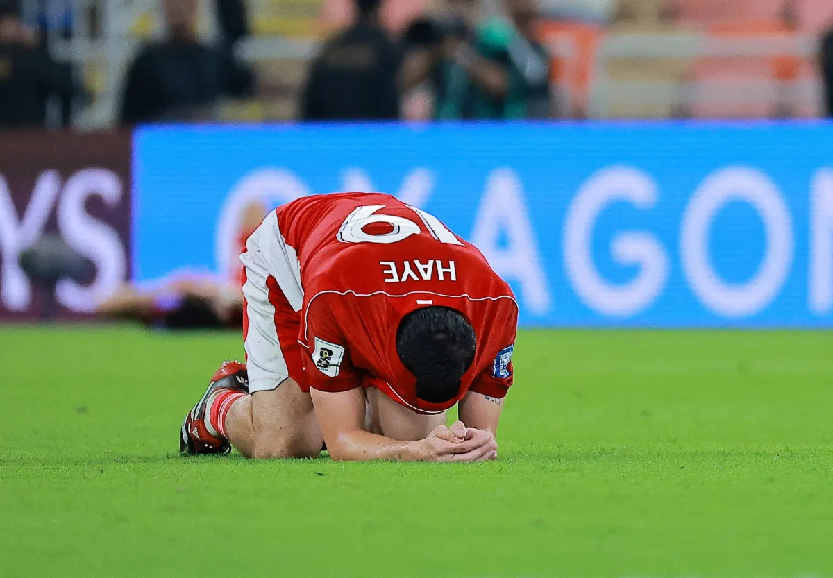 توم هاي لاعب إندونيسيا متحسرا عقب نهاية المباراة (رويترز)