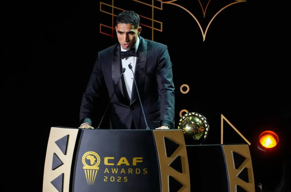 بعد أعوام طويلة من الانتظار، أعاد المغربي أشرف حكيمي الكرة الذهبية الأفريقية إلى بلاده لأول مرة منذ تتويج مصطفى حاجي بها عام 1998. وجاء فوز نجم باريس سان جيرمان بالجائزة لعام 2025 بعد موسم استثنائي حقق خلاله الثلاثية مع فريقه الفرنسي، مؤكداً مكانته بوصفه أحد أبرز لاعبي القارة السمراء في السنوات الأخيرة. وأعرب حكيمي، خلال كلمته في الحفل الذي أُقيم في الرباط، عن فخره الكبير بهذا التتويج قائلاً: «هذا اللقب ليس لي وحدي، بل لكل الأطفال المغاربة الذين يحلمون بأن يصبحوا لاعبين يوماً ما». وحضر المدافع المغربي الحفل برفقة والدته، رغم إصابته التي تعرَّض لها خلال مباراة باريس سان جيرمان ضد بايرن ميونيخ في الرابع من نوفمبر (تشرين الثاني)، التي اضطرته لمغادرة الملعب غير قادر على الوقوف.