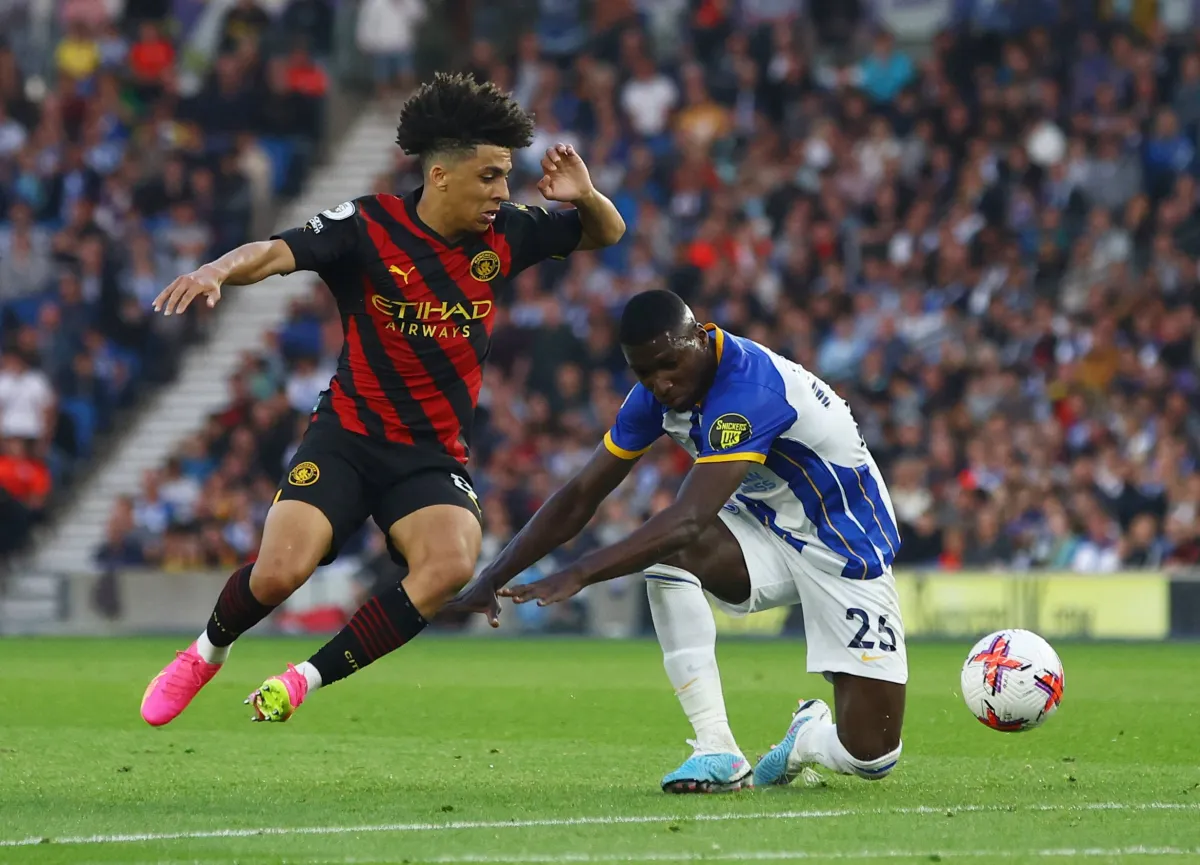 ريكو لويس في مواجهة برايتون الأربعاء (رويترز)