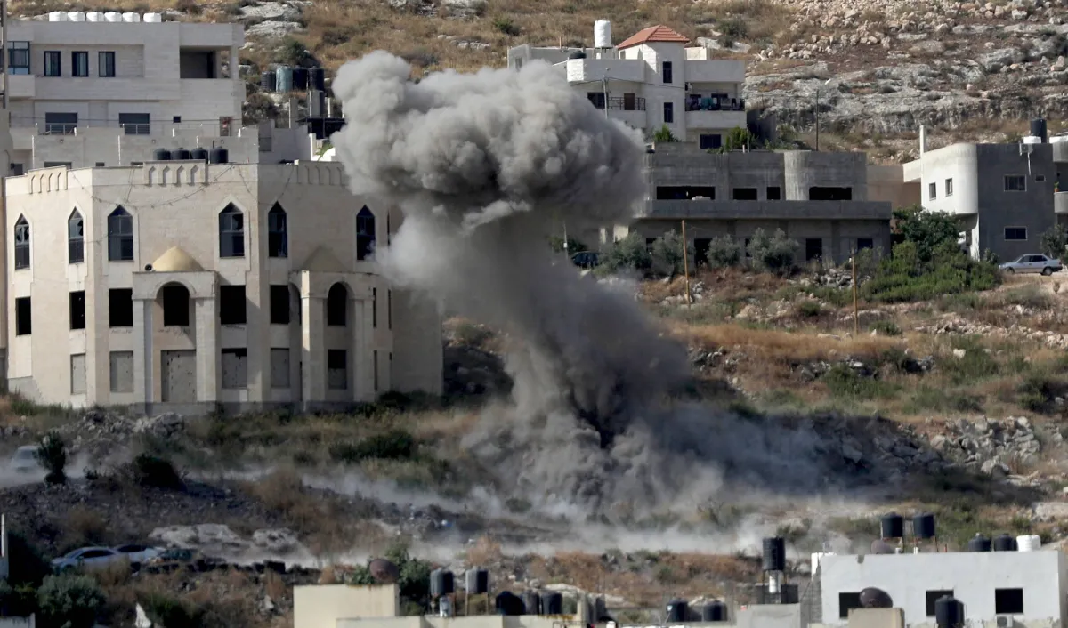 دخان يتصاعد من قصف الجيش الإسرائيلي على مدينة جنين في الضفة (إ.ب.أ)