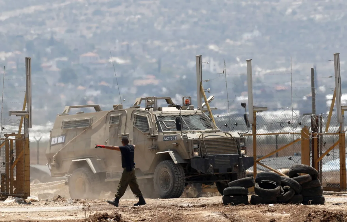 سيارات عسكرية إسرائيلية تعبر السياج الأمني للضفة الغربية إلى مدينة جنين (إ.ب.أ)
