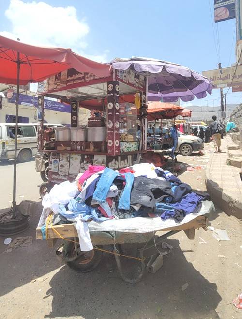 ويشتكي عثمان من كثرة الديون والمعاناة التي يكابدها مع عائلته، التي تضم 3 أطفال، منذ انقطاع راتبه قبل سنوات عدة. وخلال عمله في بيع البطاطس ثم الملابس المستعملة، واجه مثل غيره من الباعة المتجولين، تعسفات أفراد جماعة الحوثي خلال حملاتهم لفرض الجبايات، ومصادرة العربات بما تحمله من السلع، واختطاف أصحابها.