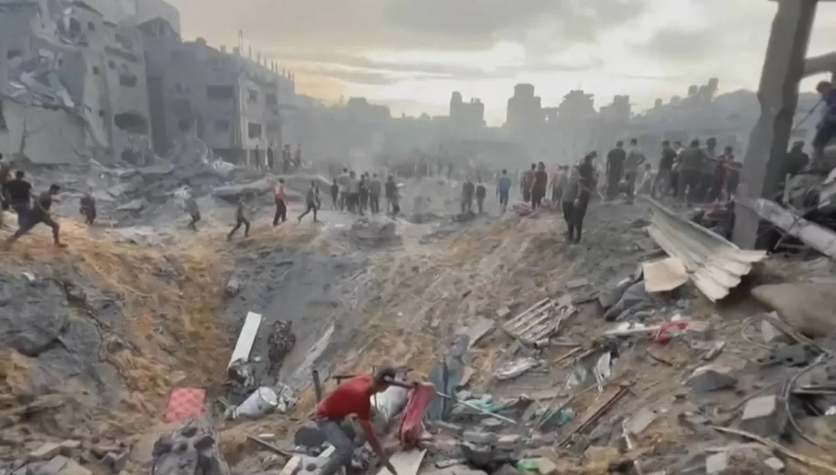 صورة من شريط فيديو لدمار جراء الغارات الإسرائيلية على مخيم جباليا بقطاع غزة (أ.ف.ب)