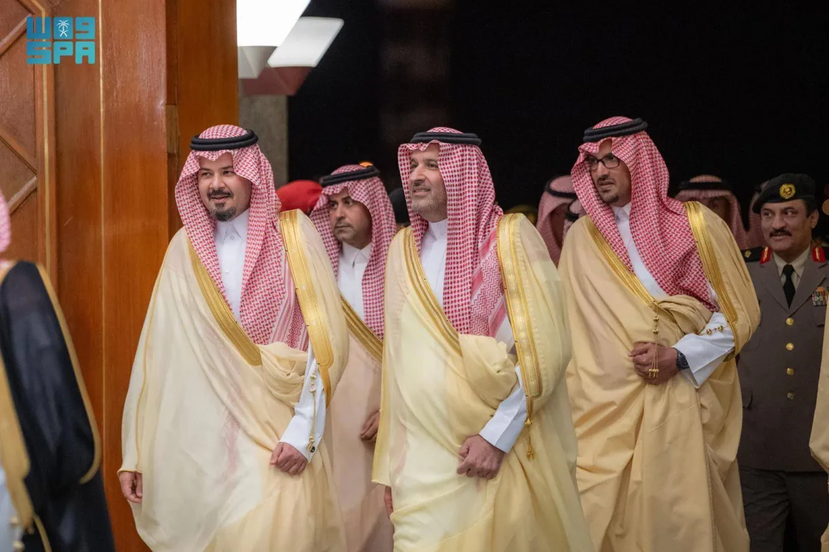 الأمير فيصل بن سلمان وإلى جواره الأمير سلمان بن سلطان لدى وصوله المدينة المنورة الأحد (واس)