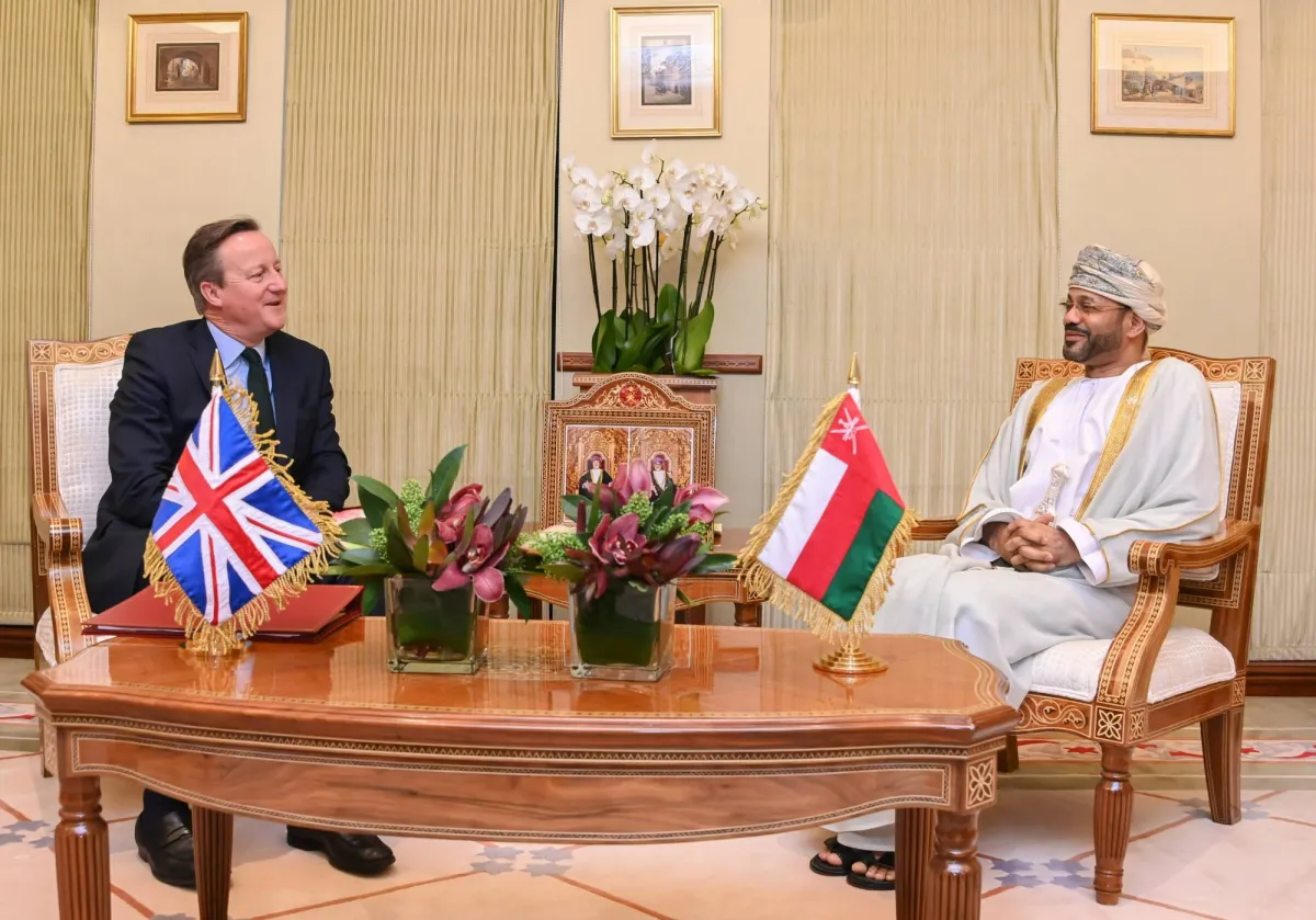 كما أجرى كاميرون في مسقط مباحثات مع وزير المكتب السلطاني الفريق أول سلطان بن محمد النعماني، الأربعاء، حيث استعرض الجانبان عدداً من القضايا الإقليمية والدولية الراهنة، ومسارات التعاون المشترك بما يحقق المصالح المتبادلة للبلدين، بحسب وكالة الأنباء العُمانية.