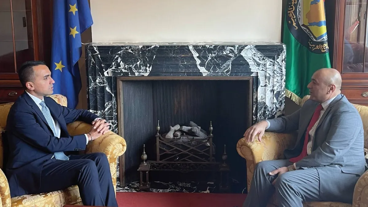 جاسم البديوي لدى لقائه لويجي دي مايو في بروكسل (مجلس التعاون)