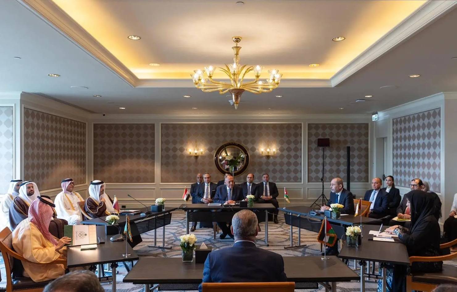 وأكد الاجتماع رفض أية محاولات لتهجير الشعب الفلسطيني خارج أرضه، وأي عملية عسكرية في مدينة رفح، مشدداً على أهمية تنفيذ حل الدولتين، وإقامة الدولة الفلسطينية وفقاً للمرجعيات الدولية.