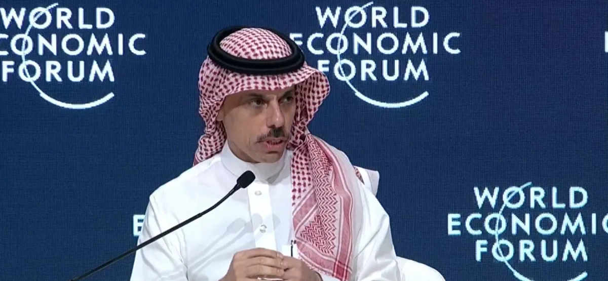 وزير الخارجية السعودي الأمير فيصل بن فرحان آل سعود خلال حديثه في الاجتماع الخاص بالمنتدى الاقتصادي العالمي (الشرق الأوسط)