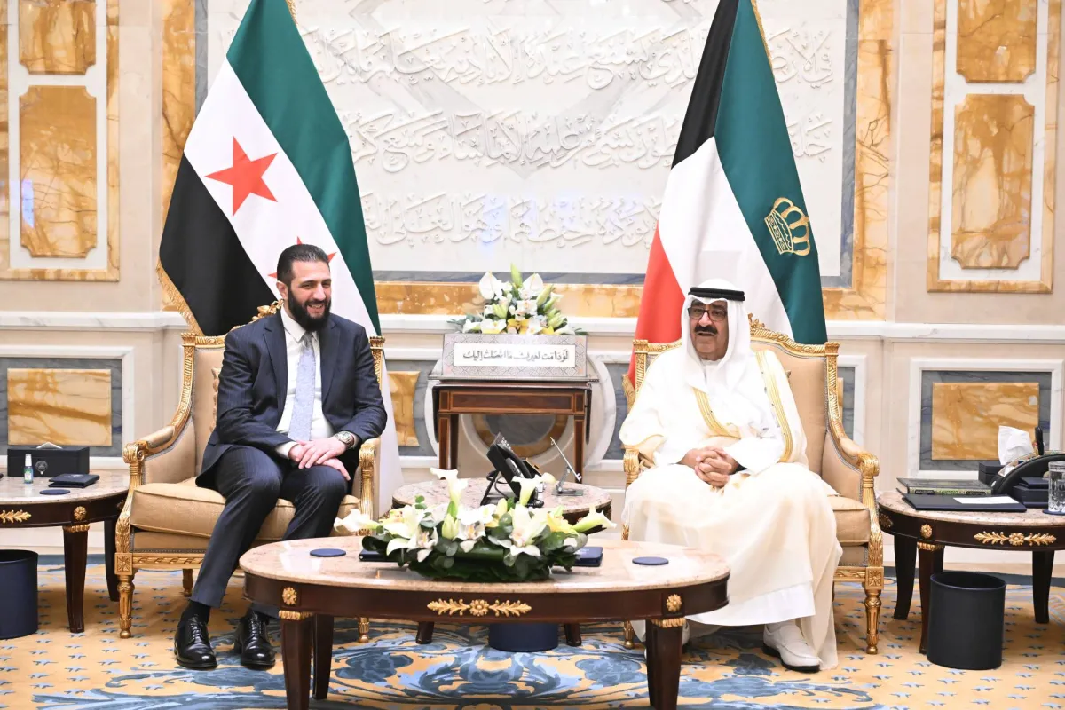 دعت الكويت إلى تعزيز جهود المجتمع الدولي لضمان أمن واستقرار سوريا، وصون سيادتها ووحدة أراضيها، وذلك خلال جلسة مباحثات رسمية عقدها الشيخ مشعل الأحمد الجابر الصباح، أمير الكويت، والرئيس السوري أحمد الشرع.