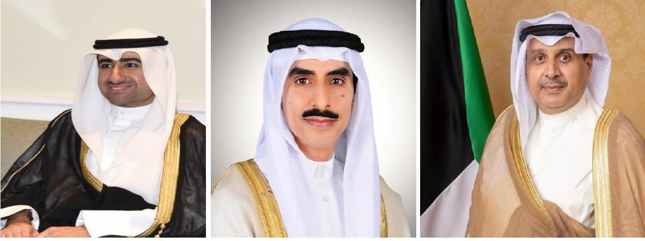 الشيخ حمد جابر العلي والشيخ ثامر جابر الأحمد والشيخ عبد العزيز مشعل الصباح (كونا)
