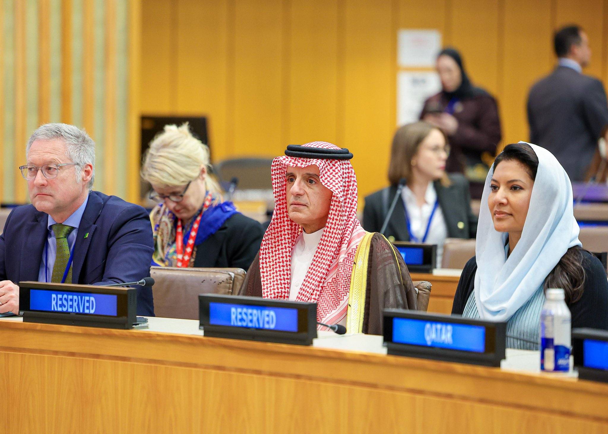 حضر الجلسة من الجانب السعودي، الأميرة ريما بنت بندر بن سلطان السفيرة لدى الولايات المتحدة، وعادل الجبير وزير الدولة للشؤون الخارجية عضو مجلس الوزراء ومبعوث شؤون المناخ، والدكتور عبد الرحمن الرسي وكيل الوزارة للشؤون الدولية المتعددة، والدكتور عبد العزيز الواصل المندوب الدائم لدى الأمم المتحدة في نيويورك.