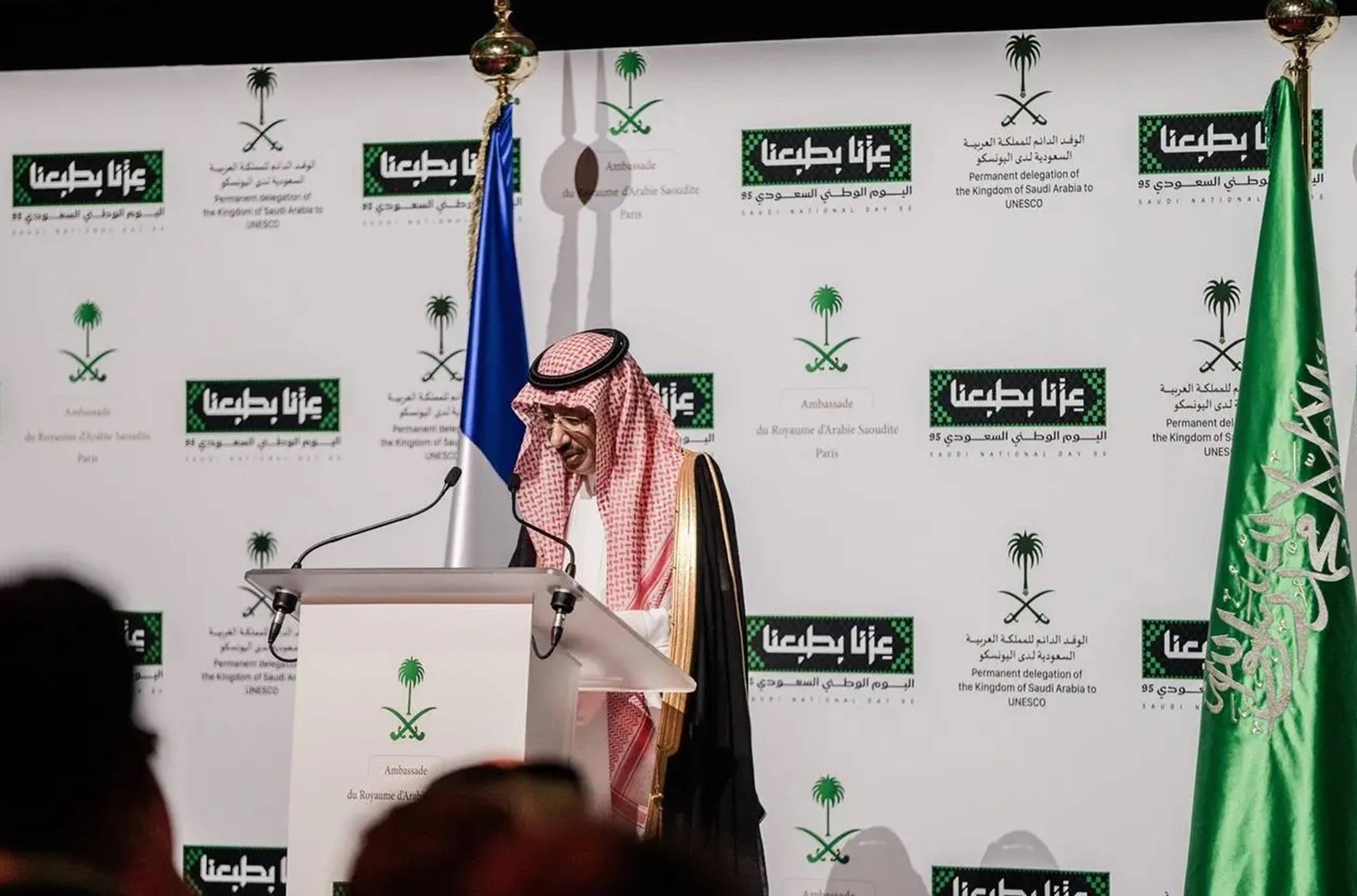 ووسط حضور رسمي تمثل بمسؤولين فرنسيين، مدنيين وعسكريين، أبرزهم وزيرة الثقافة رشيدة دجاتي، ودبلوماسيين من «الخارجية» والوزارات الأخرى إلى جانب عدد كبير من الدبلوماسيين المعتمدين لدى فرنسا ومنظمة «اليونيسكو»، وبحضور الشخصيات الفاعلة اجتماعياً واقتصادياً وثقافياً وإعلامياً، ألقى السفير السعودي فهد الرويلي، كلمة تناول فيها إنجازات بلاده التي تحققت في الحقول كافة، كما تناول التطور النوعي للعلاقات السعودية - الفرنسية وآفاقها.