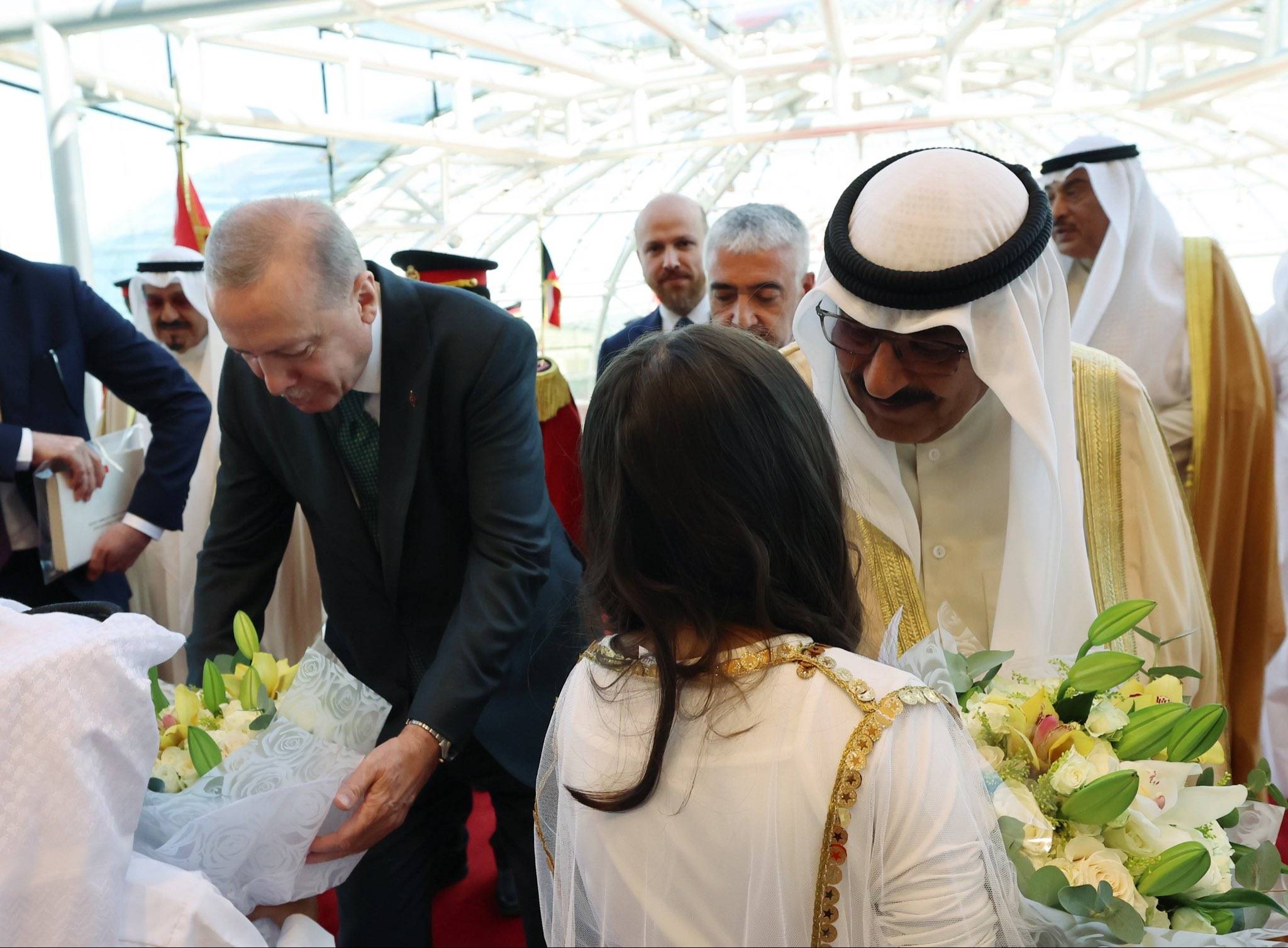 استقبل الشيخ مشعل الأحمد الصباح، أمير الكويت، وولي عهده الشيخ صباح خالد الحمد الصباح، اليوم، الرئيس التركي رجب طيب إردوغان والوفد الرسمي المرافق له، الذي وصل إلى الكويت ظهر اليوم في زيارة رسمية، في مستهلّ جولة خليجية تشمل قطر وسلطنة عُمان.