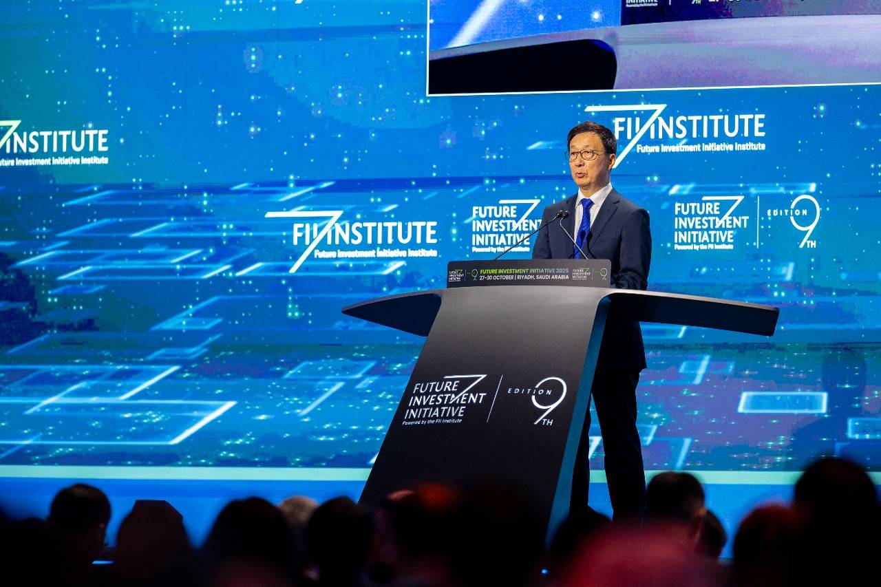 هان تشنغ نائب الرئيس الصيني يتحدث أمام مؤتمر «مستقبل الاستثمار» في الرياض الثلاثاء (الشرق الأوسط)