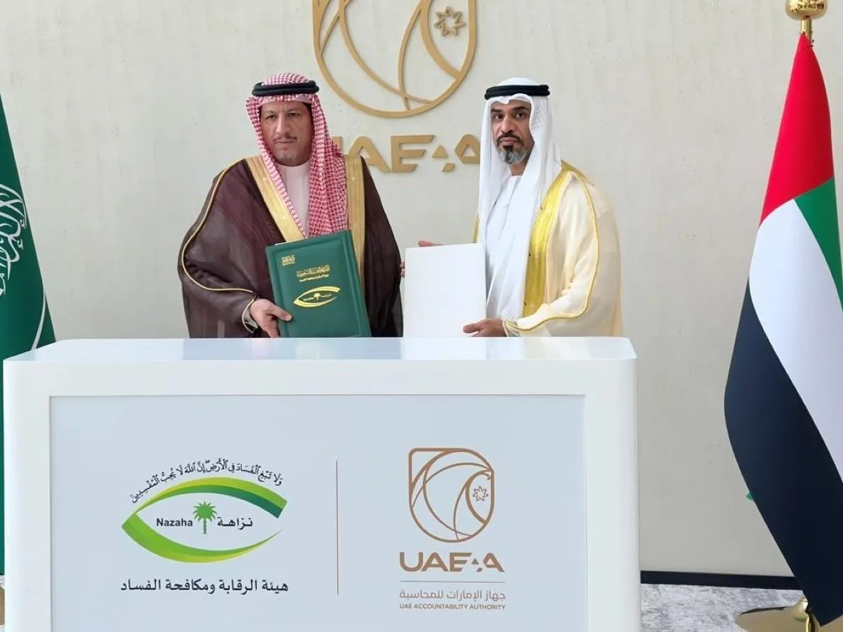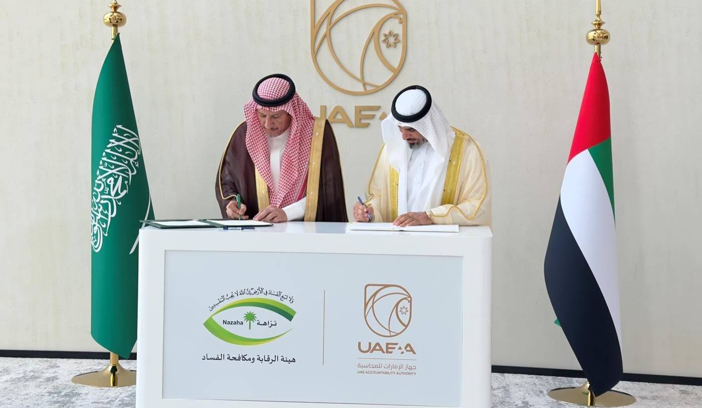 ومثَّل السعودية في توقيع المذكرة مازن الكهموس رئيس هيئة الرقابة ومكافحة الفساد، ومن الجانب الإماراتي حميد أبو شبص رئيس جهاز الإمارات للمحاسبة.