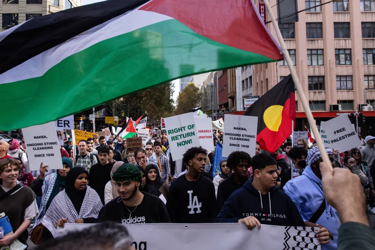 مظاهرة مؤيدة للفلسطينيين في ملبورن بأستراليا السبت (إ.ب.أ)